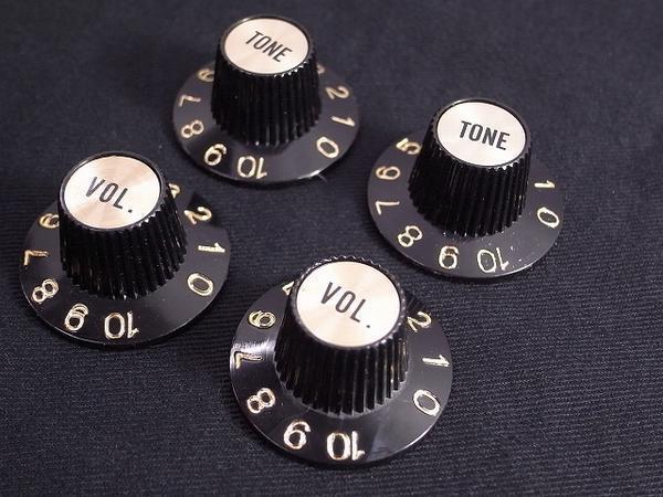 - ■【新品・4個組】KG-260V/260T・SCUD・ハットノブ・ブラック(ゴールドTOP)・黒・ミリ規格・レスポール・エレキギター