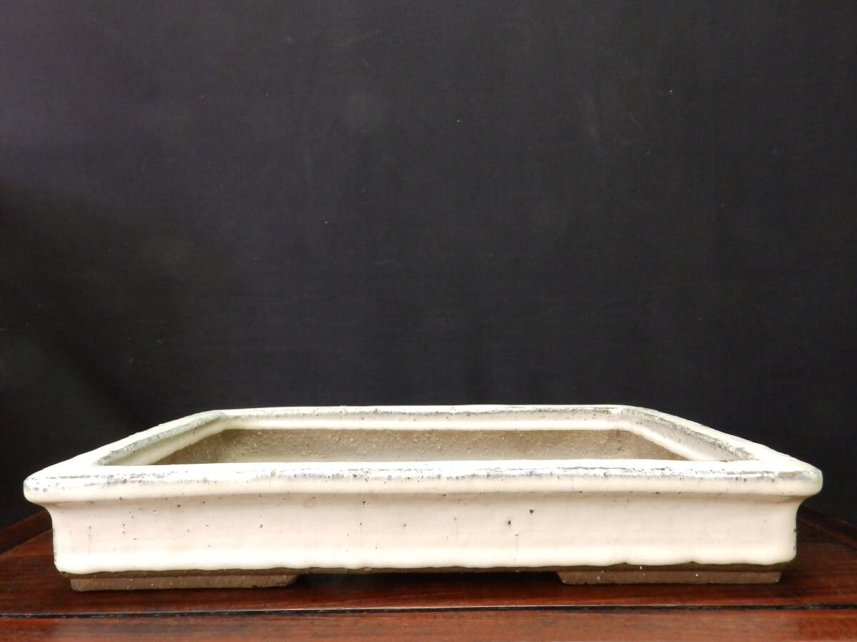 - ★盆栽日和★ 【和鉢】 白釉外縁長方鉢・在銘 32.4㎝