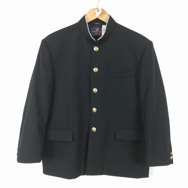 - 学生服 学ラン 165B 男子 上着 丸洗い可 ウール混 標準型学生服 ラウンドカラー カシドス 黒 中古 ランクC a3 JJ6526