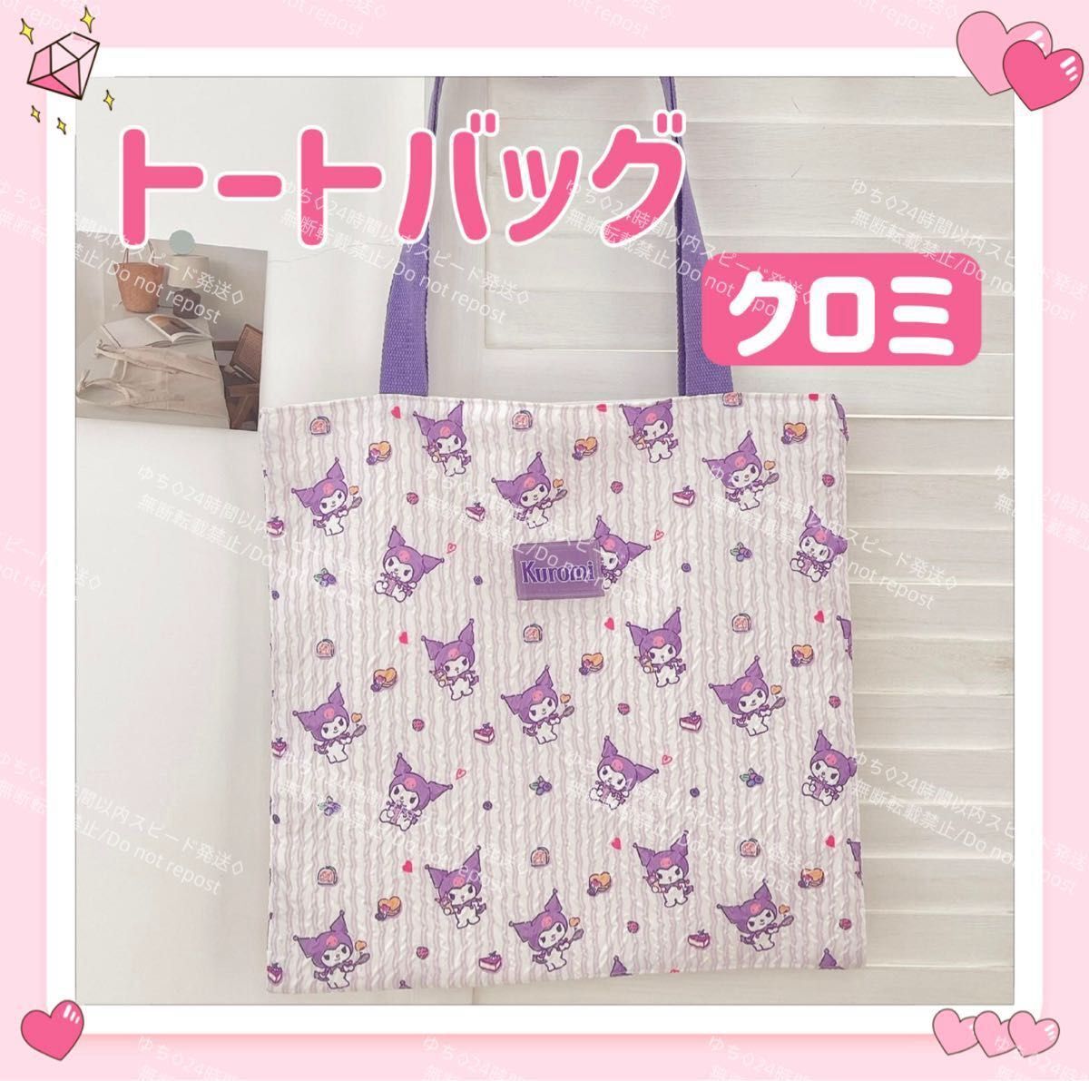 - おまけ◎ 海外限定 サンリオ クシュクシュ トートバッグ エコバッグ サブバッグ 肩掛け 手提げ オシャレ 可愛い クロミ