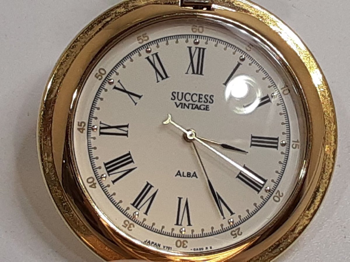 > セイコー SEIKO アルバ サクセス ヴィンテージ 懐中時計 ポケット ウォッチ V701-0A10 SS GP アナログ クォーツ ALBA【中古】 ht5462