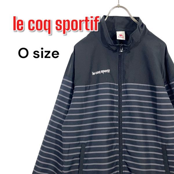 - レディース le coq sportif ルコック ウインドブレーカー ジャケット Oサイズ 黒/グレー ボーダー