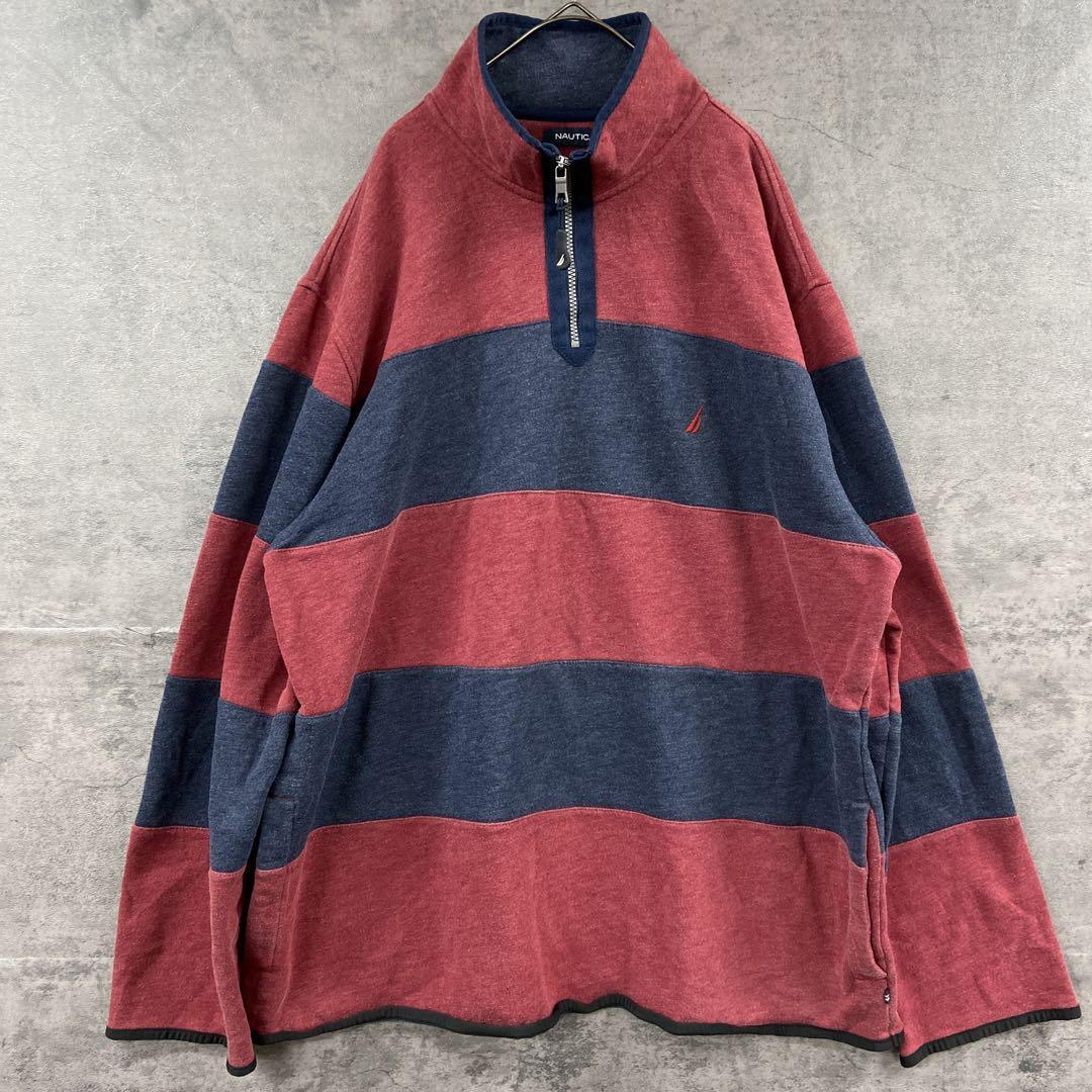 - ノーティカ ボーダー メンズハーフジップスウェット XXL 赤紺【5649】