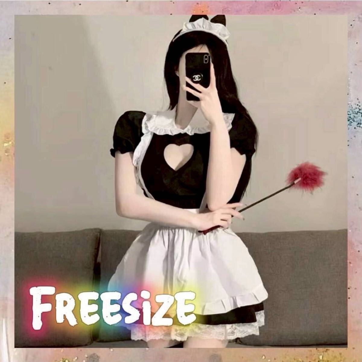 - バニーガール メイド服 コスプレ ハロウィン ハートカット エプロン付き 仮装