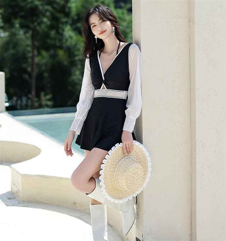 - 水着 薄手 ワンピース レディース 温泉 長袖 セクシー L ブラック