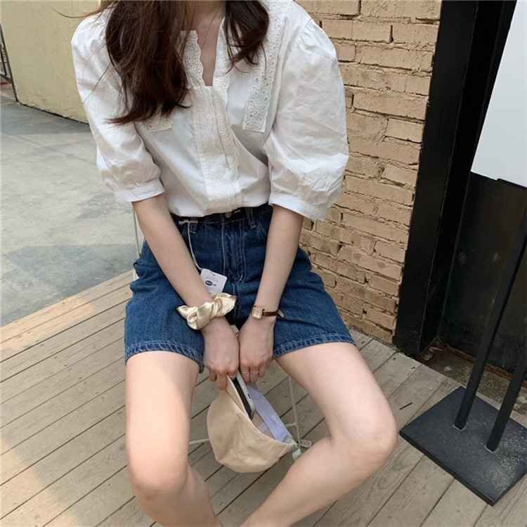 - レトロ ゆったり シンプル スリム ストレート デニム ショート丈 L ダークブルー