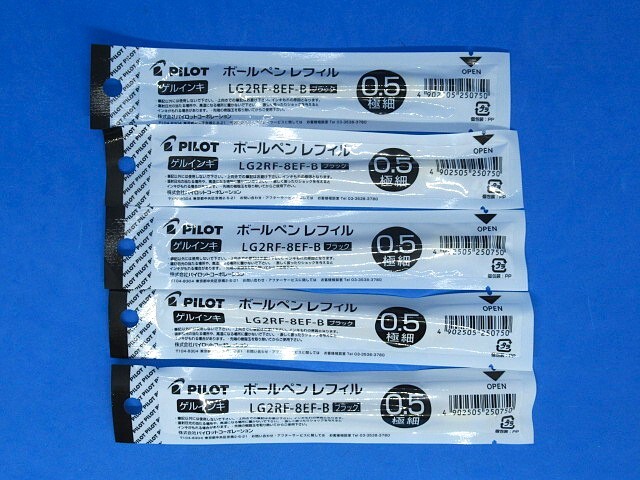 - PILOT パイロット LG2RF-8EF-B(黒) ゲルインキ ノック式用替芯 0.5mm(極細)5本★未開封品・送料無料★