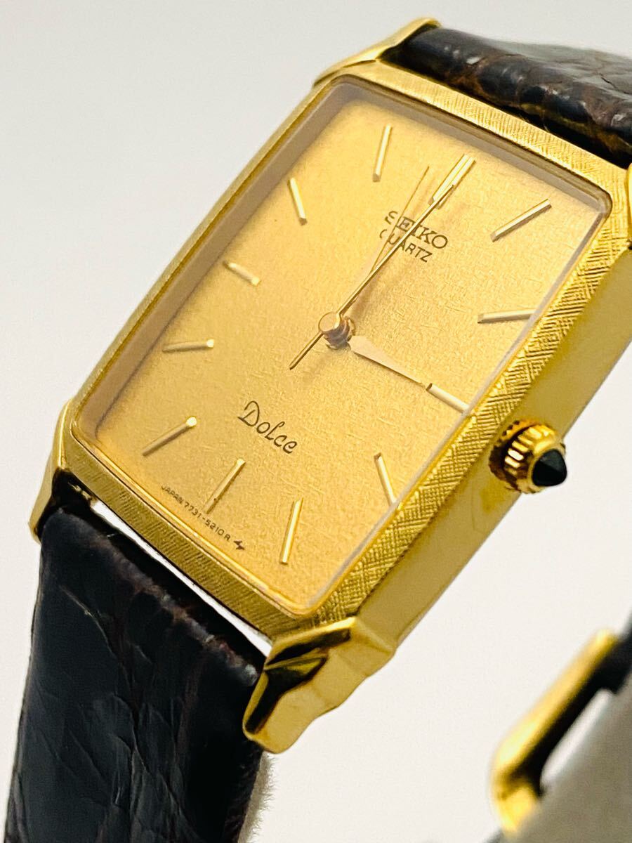 - 未使用 SEIKO DOLCE セイコードルチェ 稼動 7731-5180 金文字盤 QZ メンズ腕時計 薄型