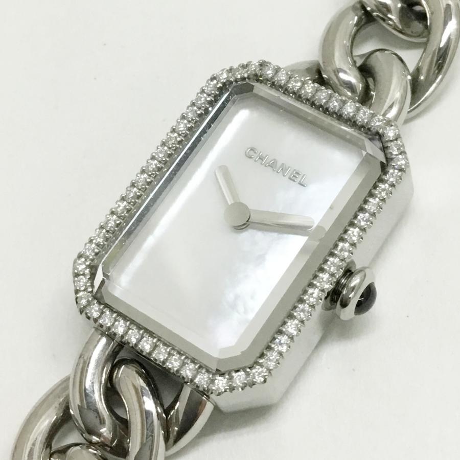 - 送料無料 中古A シャネル 時計 CHANEL プルミエール メタル チェーン H3253 ダイヤモンド ベゼル ホワイトシェル 箱 保証書付 147864