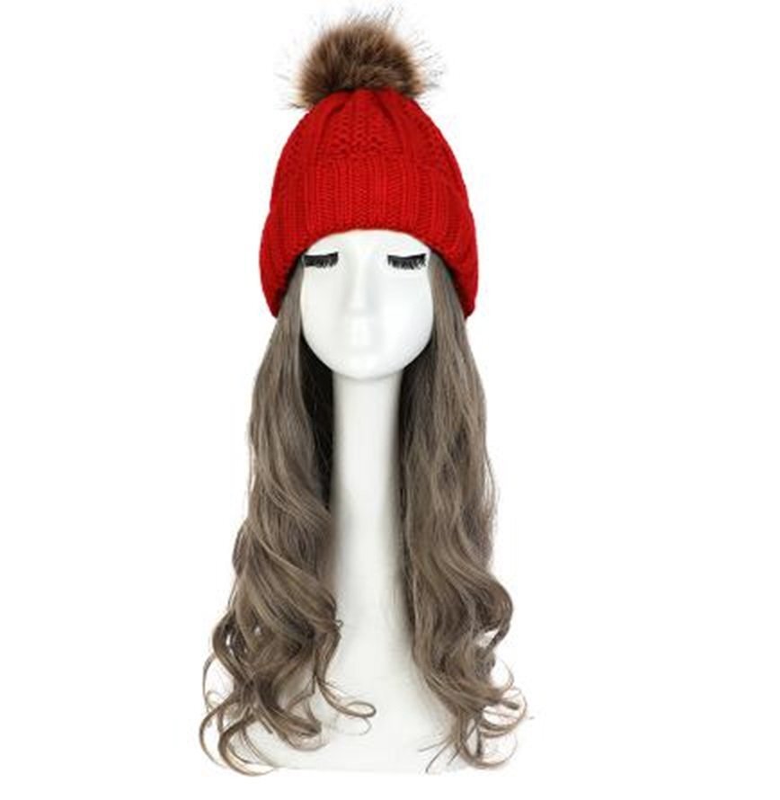 - ウィッグ付きニット帽 ニット帽/レッド ウィッグカラー/E ロングヘアー イメチェン 髪色チェンジ コスプレ