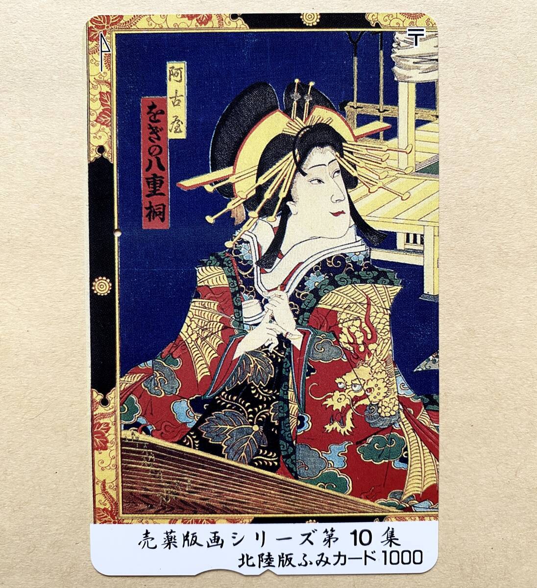 - 【使用済】 ふみカード 北陸版 売薬版画シリーズ 第10集 阿古屋 をぎの八重桐