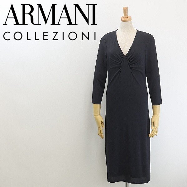 - 【HA228】国内正規品◆ARMANI COLLEZIONI アルマーニ コレッツォーニ ストレッチ 七分袖 フロントギャザー ロング ワンピース 44