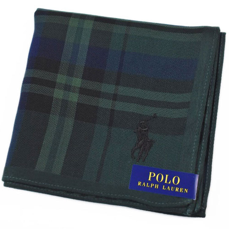 - ハンカチ 1枚 ポロ ラルフローレン メンズ グリーン 紺 ネイビー チェック ロゴ 刺繍 男性 紳士 父の日 ギフト