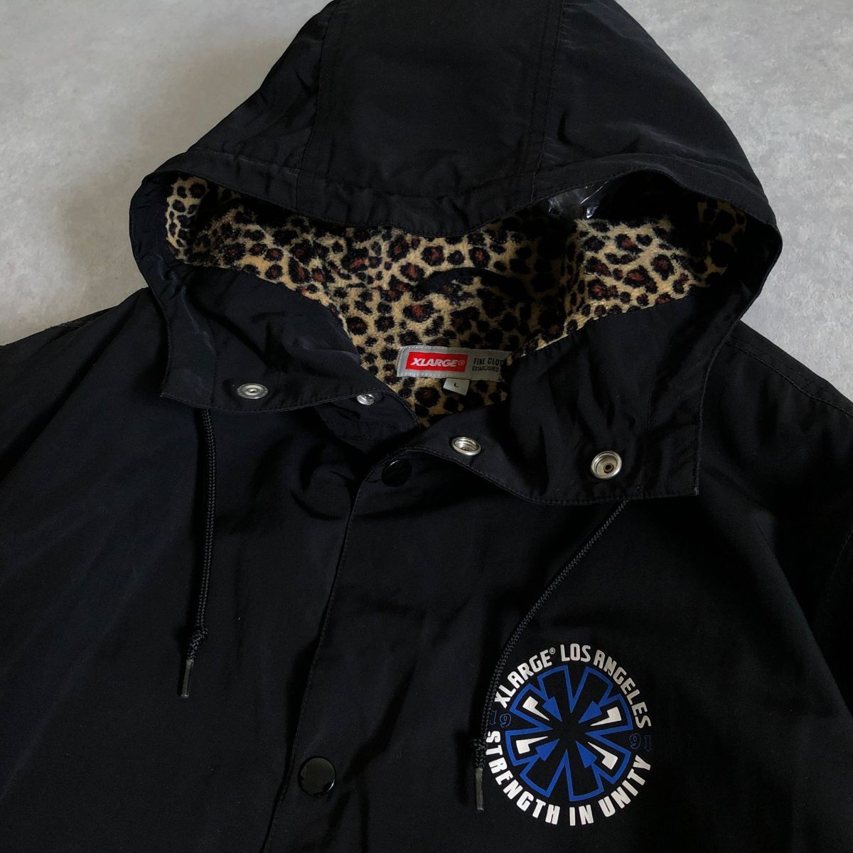 > X-LARGE●ヒョウ柄レオパード パイル インナー ストリート フード コーチ ジャケット●エクストララージ