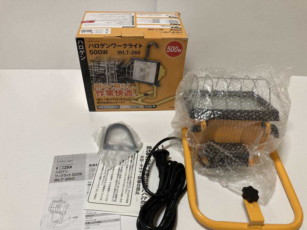 - 未使用 TAKAGI ハロゲンワークライト 500W WLT-260 EARTH MAN 置く 吊り下げ 2WAY 家庭用電源 AC100V 防雨タイプ コード3M