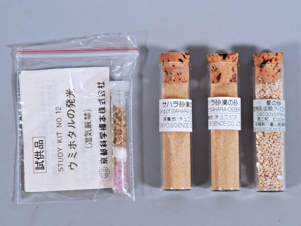 - まとめて 4点 セット サハラ砂漠の砂 採集地 チュニジア 星の砂 沖縄 ウミホタルの発光 試供品 標本 TOKYO SCIENCE CO., LTD. 昭和レトロ