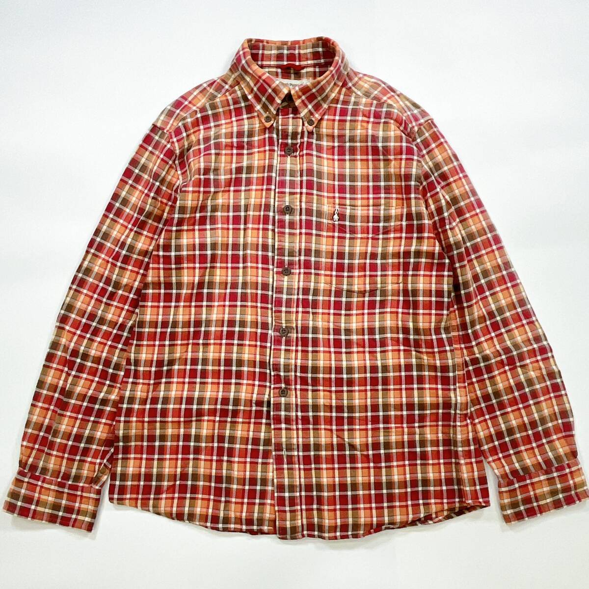 - Hush Puppies ハッシュパピー 長袖 チェツク柄 シャツ カジュアル M ボタンダウン 胸ポケット付き 紳士 メンズ 赤 オレンジ ☆343y