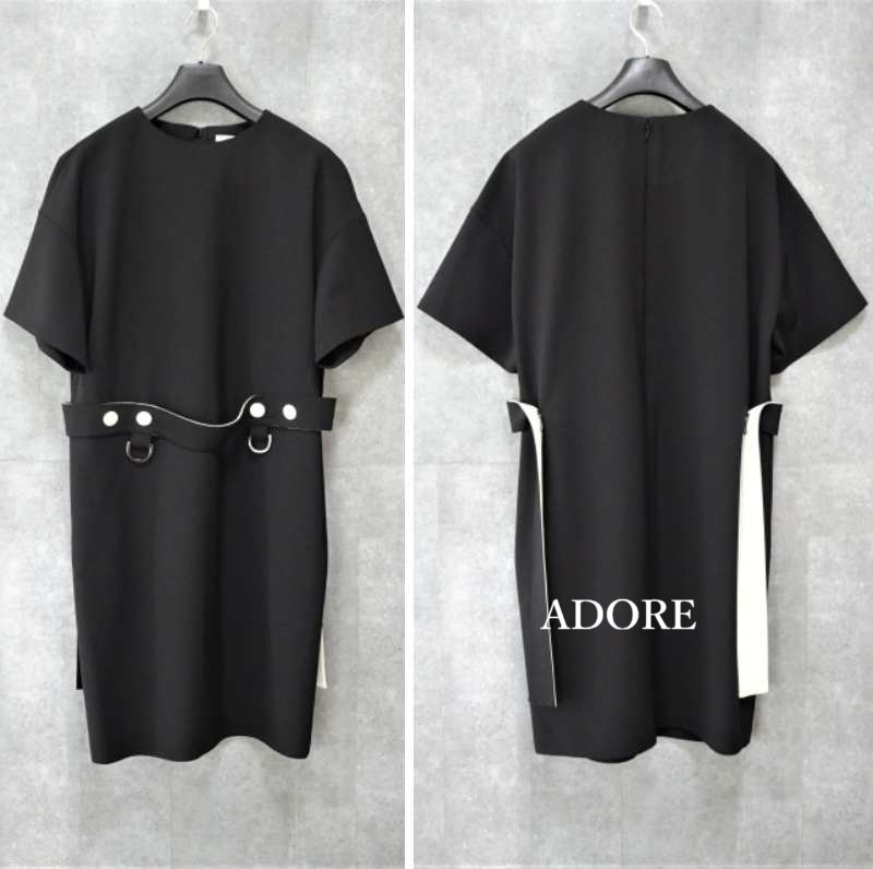 - 美品【ADORE|アドーア】ストレッチ ダブルクロス ワンピース デザインベルトワンピース 黒 38 M 即決
