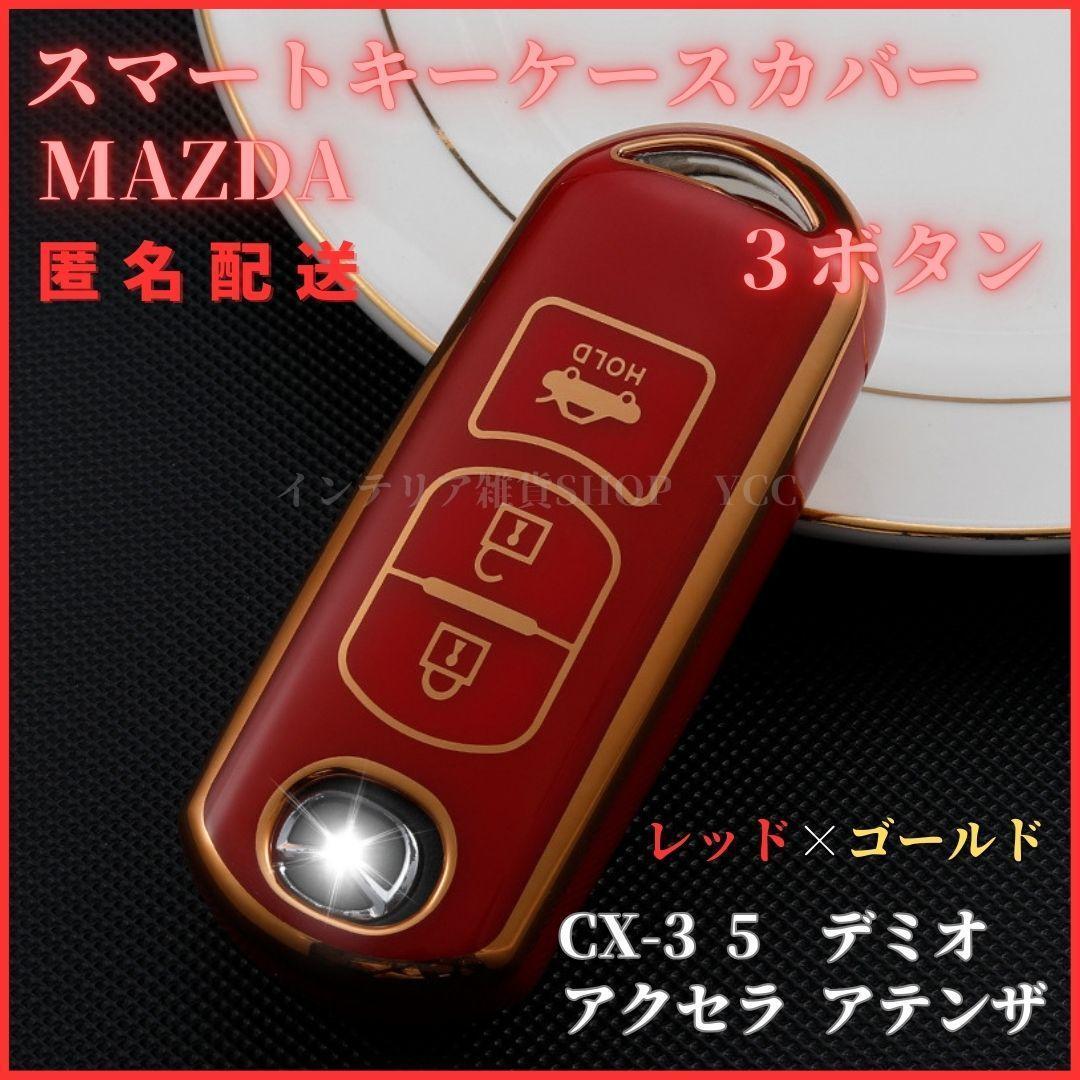 - MAZDAマツダ キーケースキーカバー CX-5/3 デミオ アクセラ アテンザ ロードスター スマートキー 3ボタン 赤金
