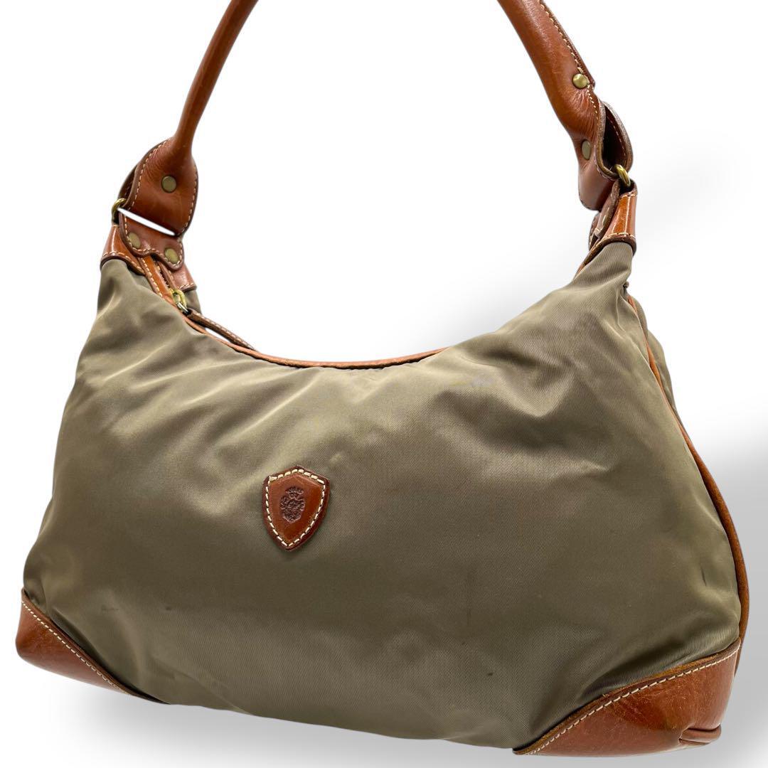 - 美品 Felisi フェリージ ショルダーバッグ ナイロン レザー カーキ ロゴ