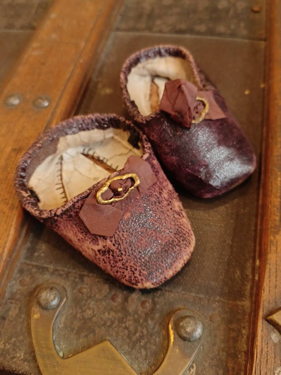 - ≪特価≫ お人形 ビスクドール リプロダクションドール シューズ アンティーク 靴 ブラウン リボン