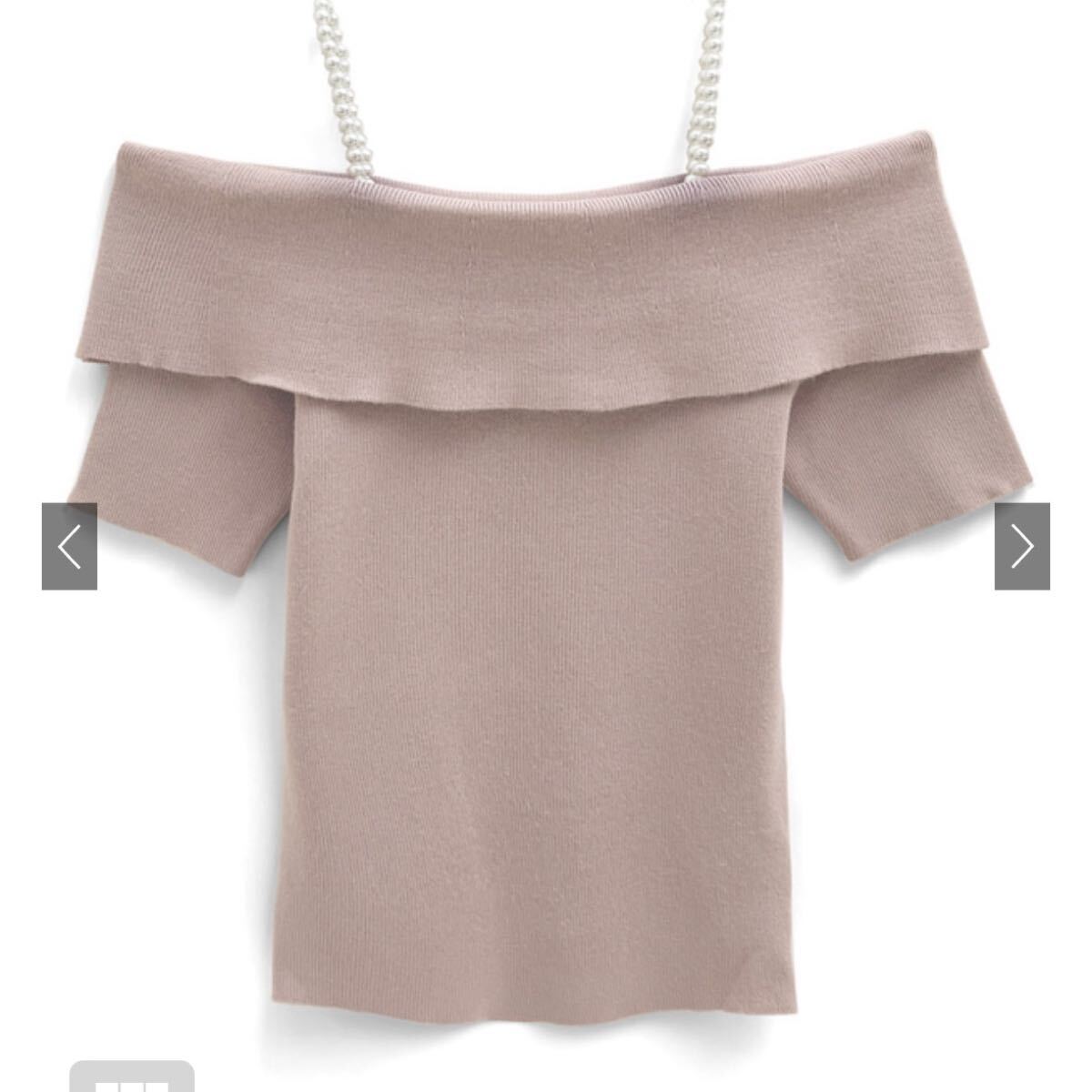 - パールストラップ付きオフショルダーニットトップス