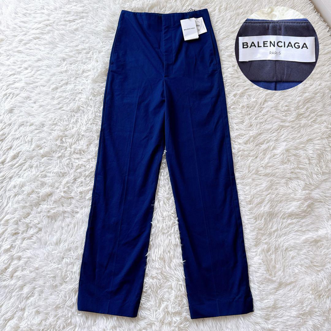 > タグ付き BOTTEGA VENETA ボッテガヴェネタ ハイウエスト スラックスパンツ ネイビー Sサイズ ワイドパンツ ブルー 青 コットンツイル