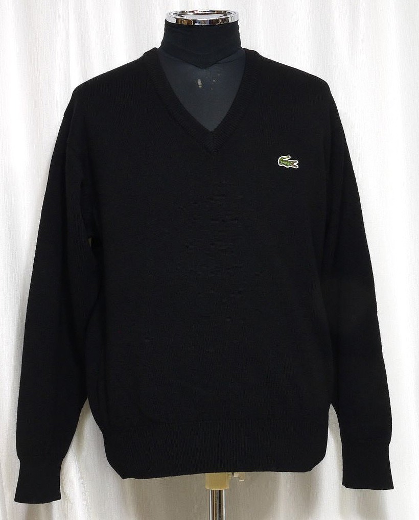 > ☆希少 美品 80s CHEMISE LACOSTE ラコステ メンズ ウール ニット セーター V首 サイズ4 実寸やや大きめM位 ブラック