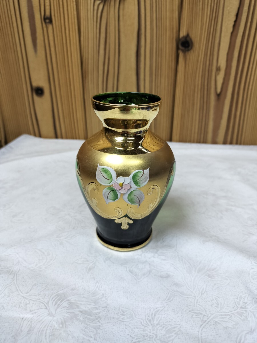 - ★ムラーノガラス ベネチアグラス 一輪挿し 金彩 グリーン★