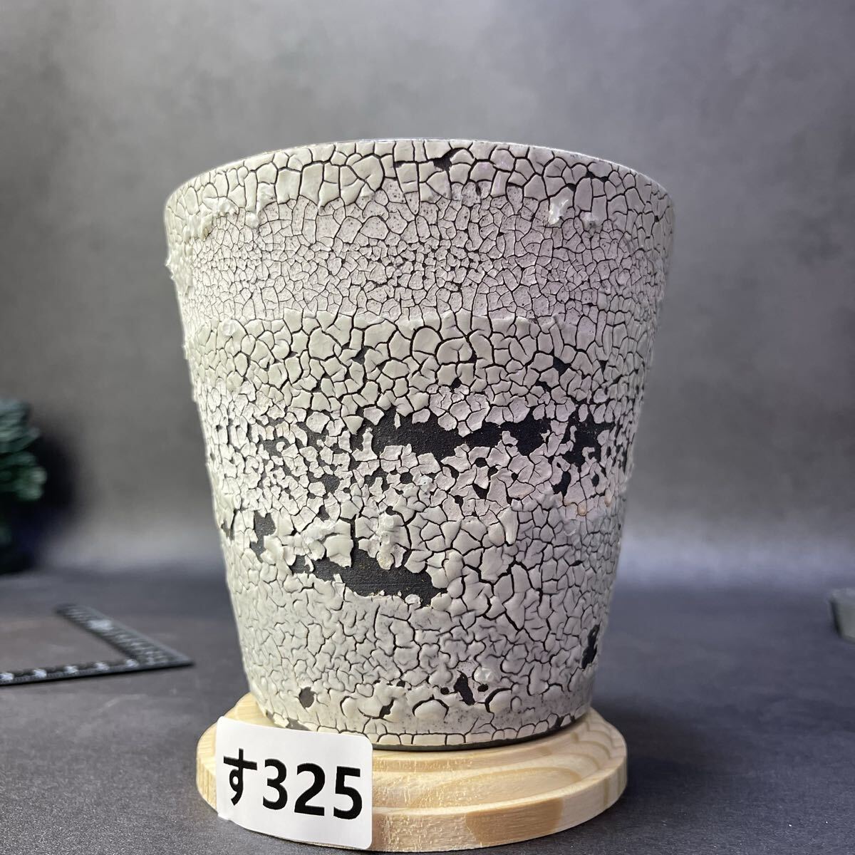 > す325 HAND Made 4号 植木鉢 白裂迷彩釉 陶器検(アガベ パキプス 姫巌竜 帝釈天 黒火焔 factory SRL カタチ製作所 グラキリス 塊根植物