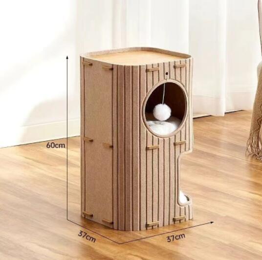 - 新入荷ダンボールハウス猫タワーキャットハウス猫用爪とぎ高密度段ボール組み立て式 猫爪とぎボックス収納簡単多層構造二階 多機能カーキ