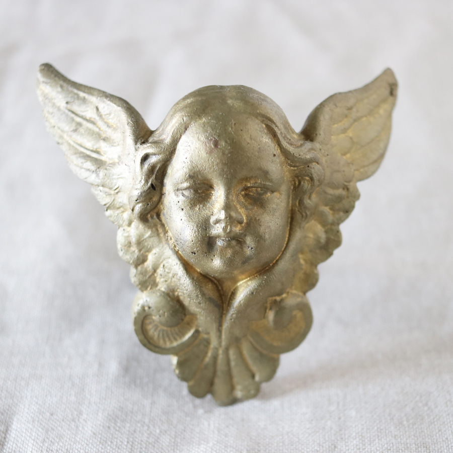 > 仏 1890年 ケルビム エンブレム 紋章 智天使 ブロンズ オーナメント フランスアンティーク 天使 キリスト 19世紀 ゴシック アールヌーボー