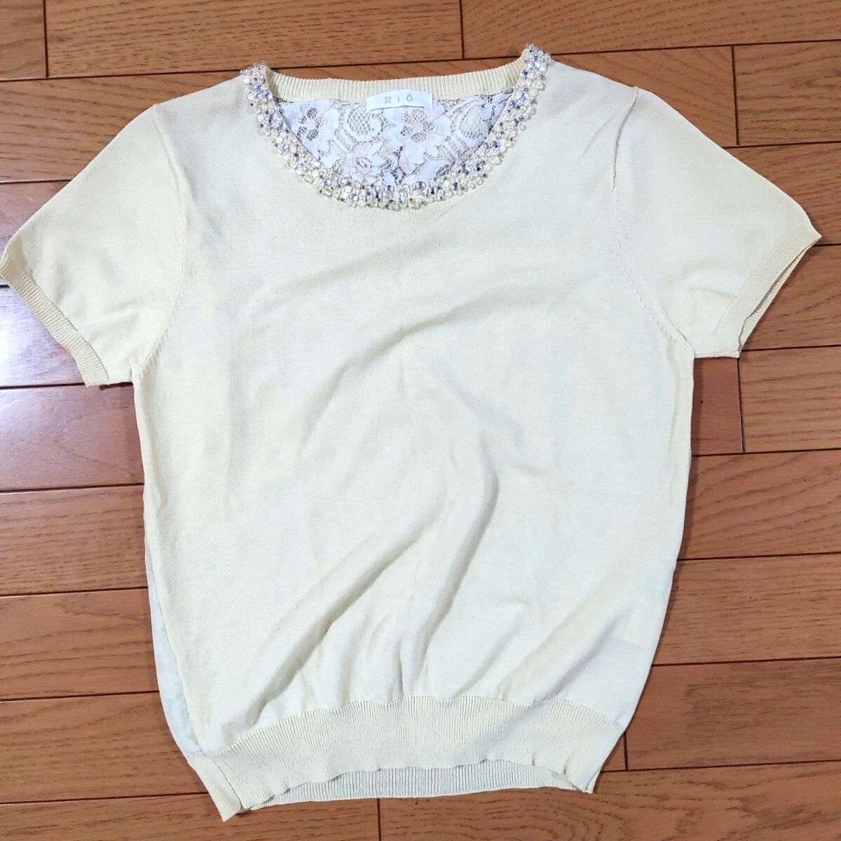 - RIO 半袖 カットソー トップス M レース ビーズ装飾 中古 古着 送料185円