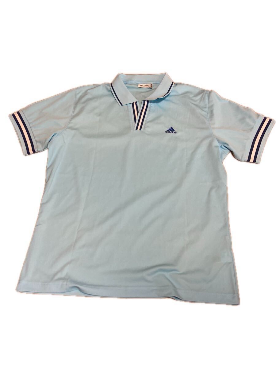 - adidasアディダスゴルフ半袖水色スキッパー襟半袖ポロシャツ サイズ X O