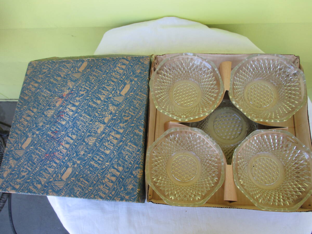 > ★ガラス食器 4個セット デザート 果物 ソバツユ 小鉢 レトロ ヴィンテージ 透明 ダイヤモンド柄 外径12.5×4.5㎝ 重さ220㌘