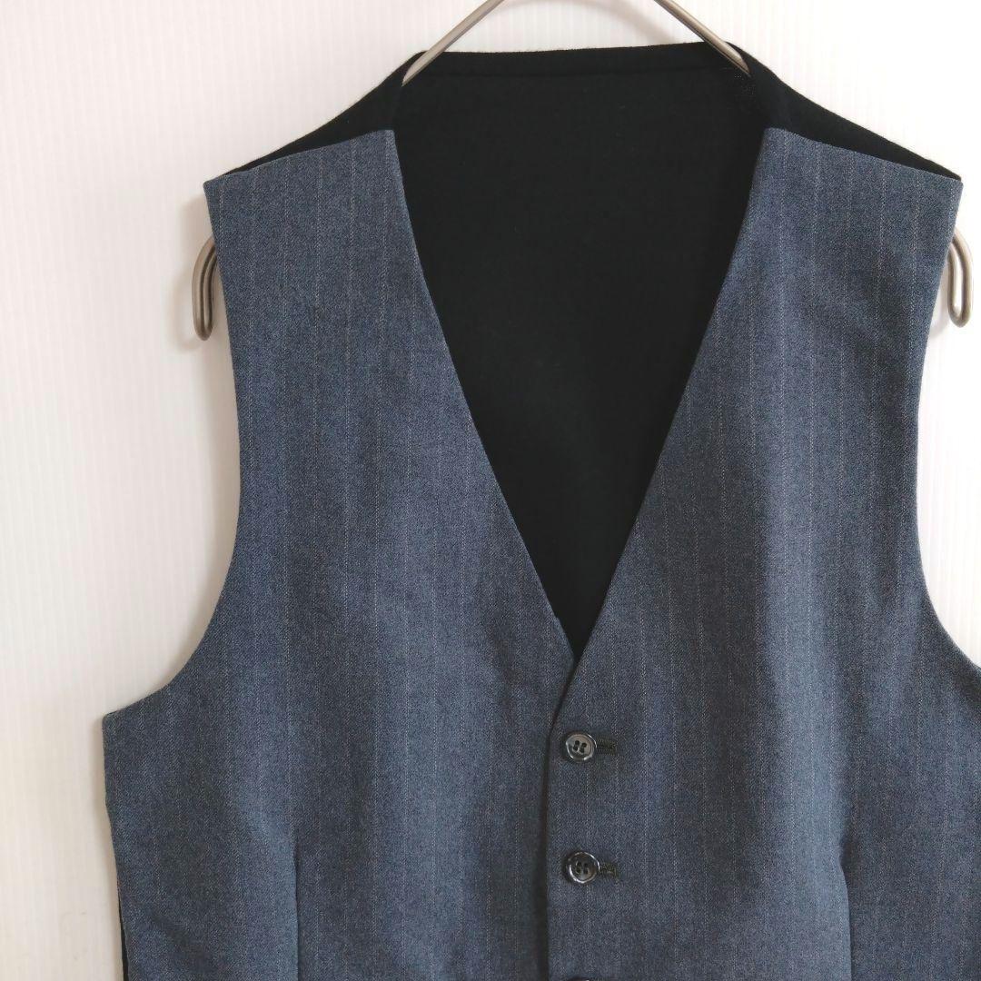 - 103 スーツベスト S 青灰 縦縞柄 ジレベスト