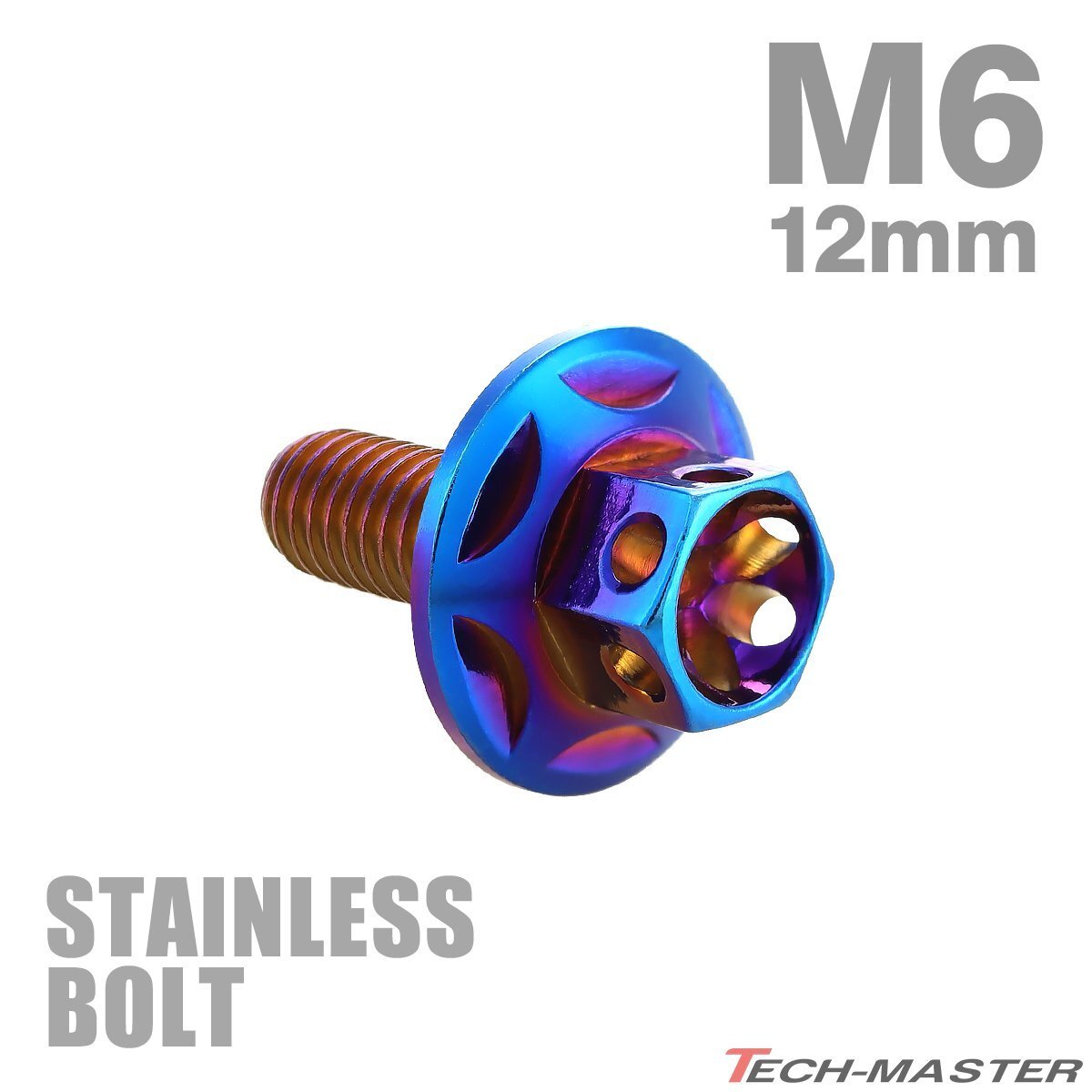 - M6×12mm P1.0 フランジボルト ワイドフランジ スターフラワーヘッド ステンレス 焼きチタンカラー 車 バイク カスタム 1個 TB0991