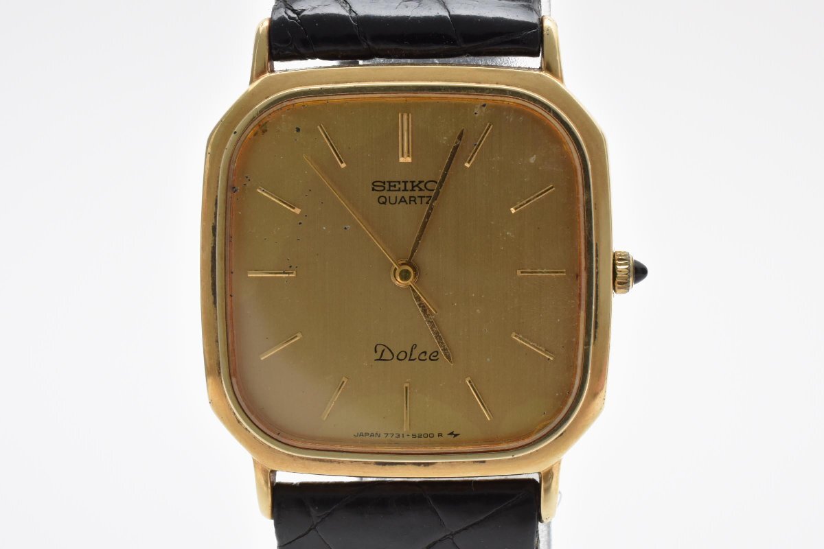 - SEIKO QUARTZ Dolce セイコー クォーツ ドルチェ スクエア 腕時計 メンズ 3針 ゴールド 革ベルト 7731-5170