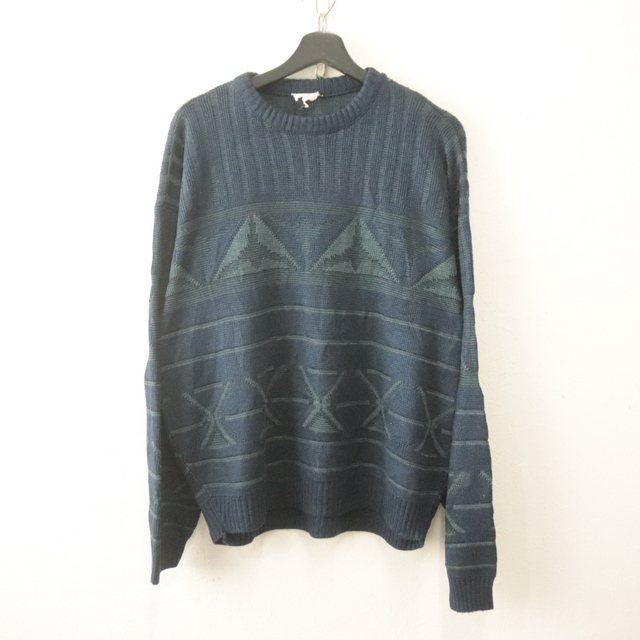 - V958 80sビンテージ アクリルニットセーター■1980年代製 約Lサイズ ネイビー 紺 柄 アメカジ ストリート 古着 激安 古着卸 ヴィンテージ