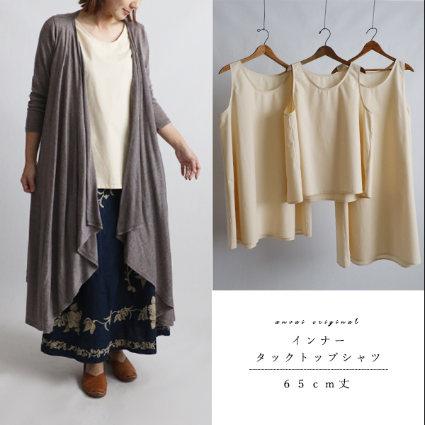 > 新作PRICE 65cm丈 コットン100% インナー キャミソール タンクトップ シャツ ゆったり アイボリー シンプル F35A