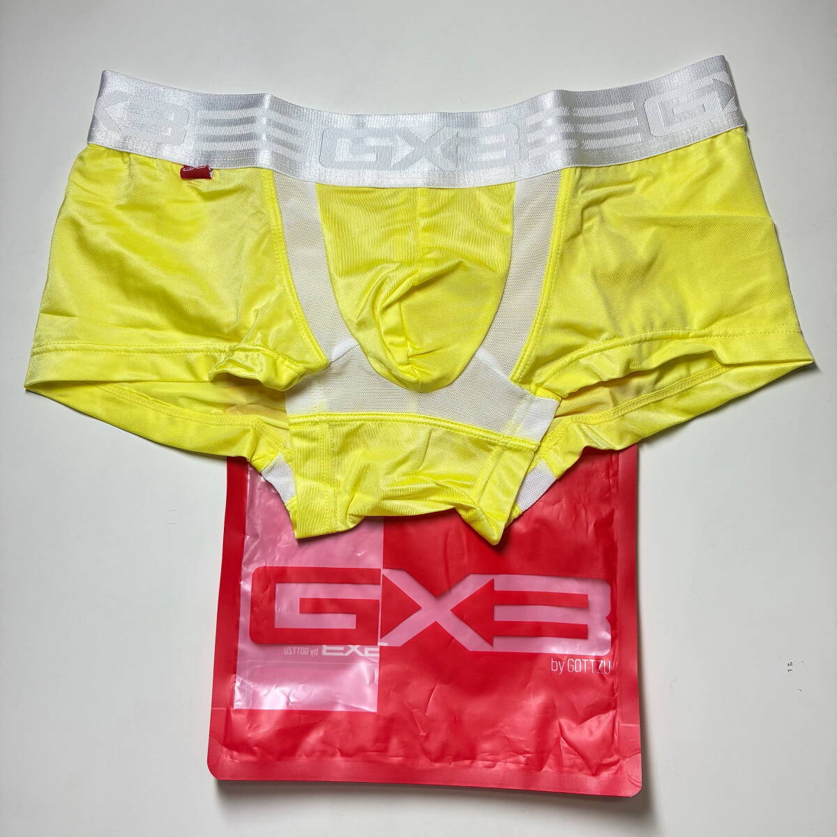 - ◆GX3◆ジーバイスリー メンズ ボクサー ブリーフ ローライズ Mサイズ イエロー ナイロン系 通気透かしメッシュあり 未使用品/袋ナシ◆下着