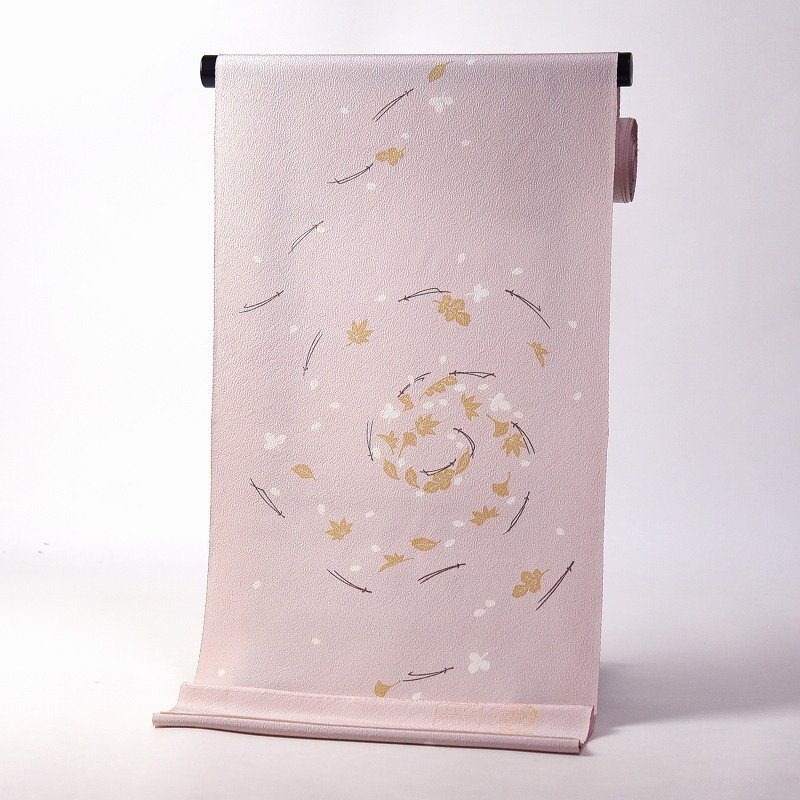 > 【ほりだし堂】 秋におすすめ 吹き寄せ文様 小紋 桜色 12m 反物 正絹 着物 広幅39cm