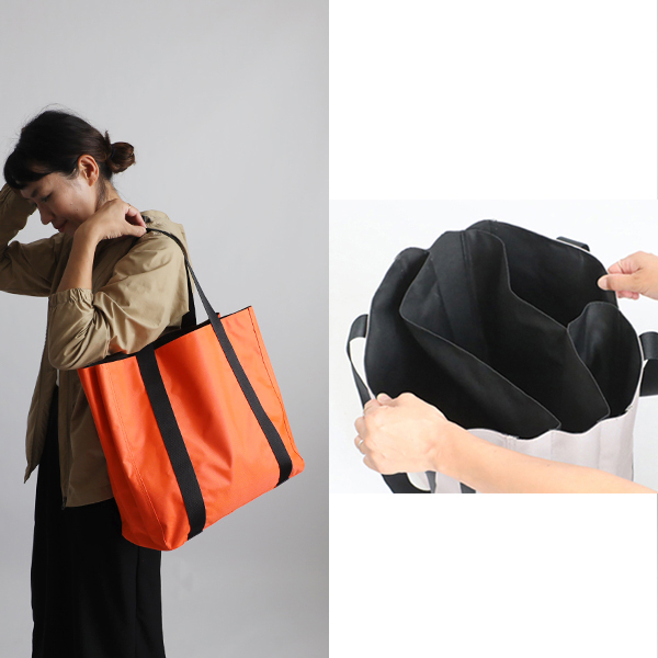 - 送料無料 秋SALE Lサイズ パラシュート防水ナイロン 間仕切りトート バッグ 裏地付 オレンジ P48E