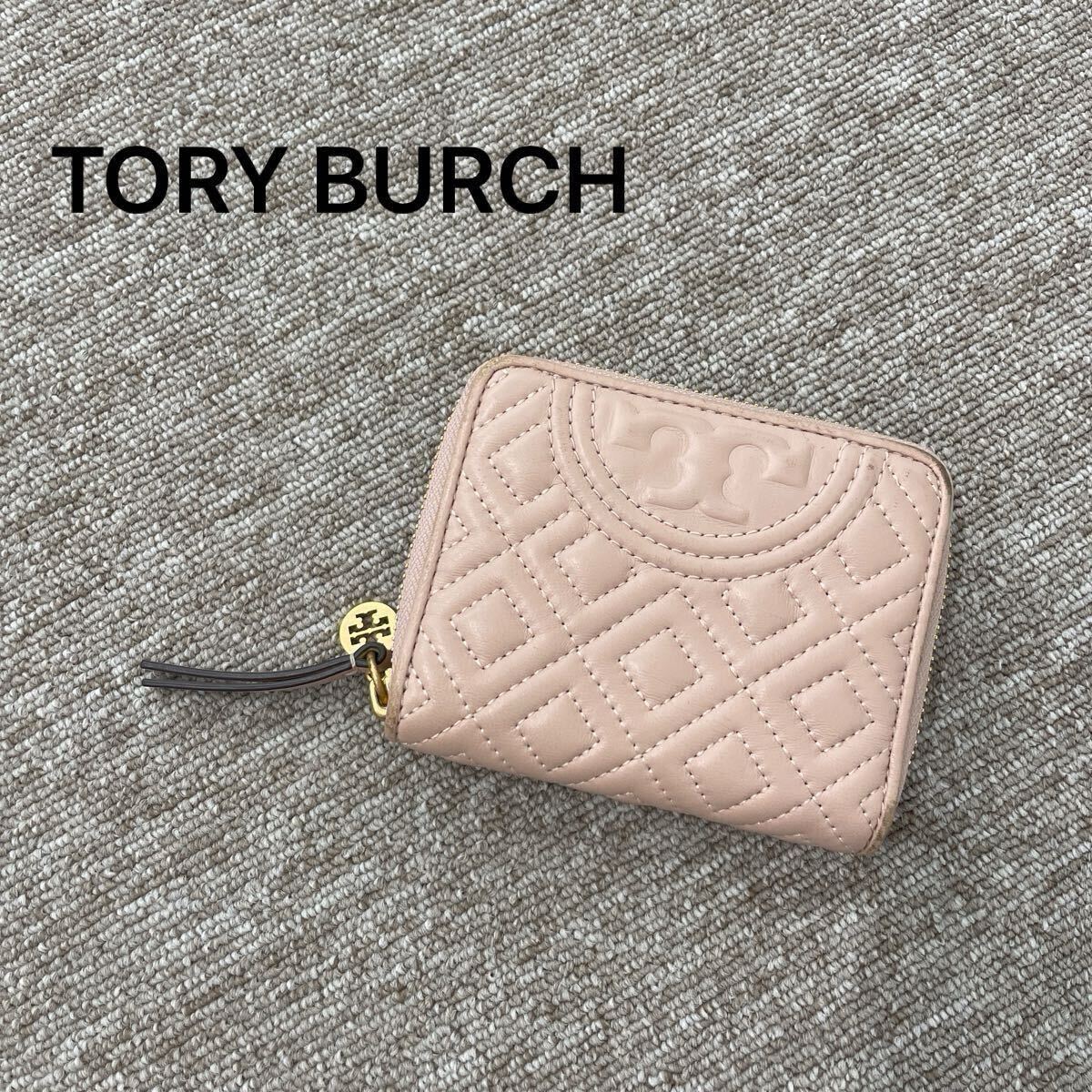 - 【669】TORY BURCH トリーバーチ コンパクト財布 ラウンドファスナー コインケース レザー財布 ピンク 良品