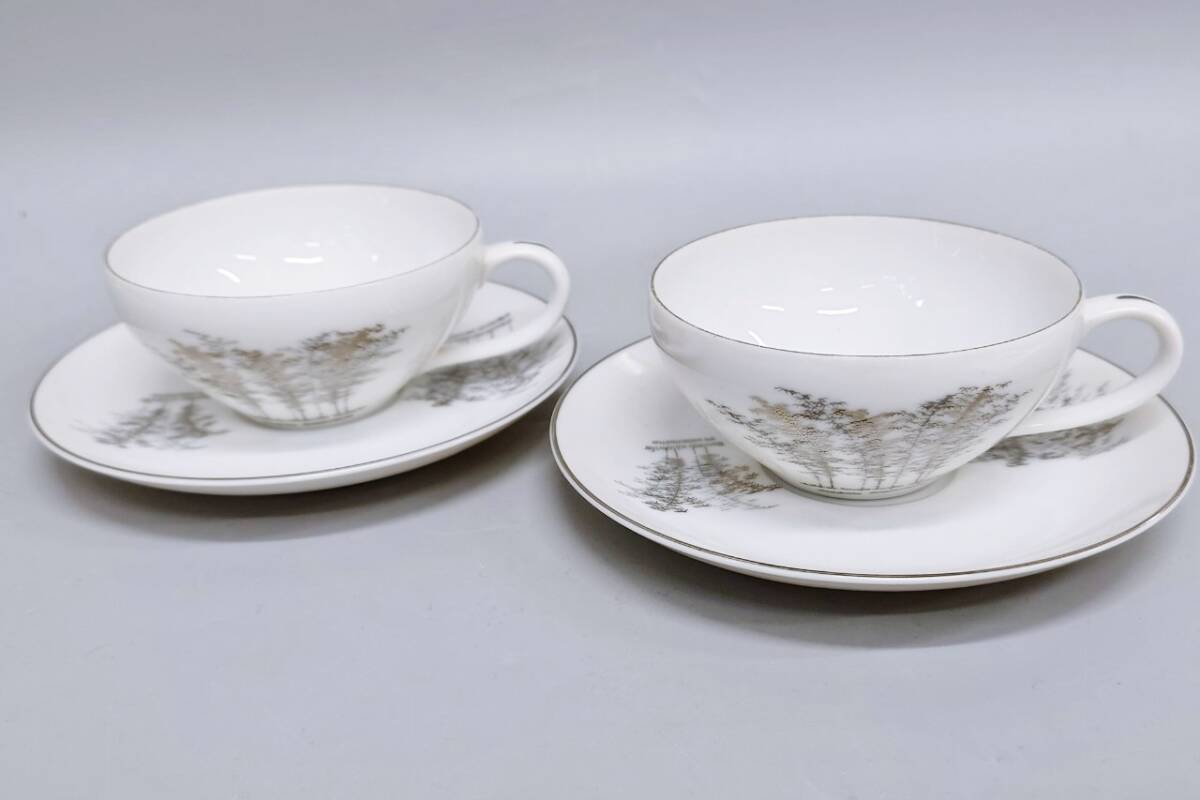 - 宮内庁御用達 深川製磁 有田焼 銀彩 竹林 カップ&ソーサー 2客 セット 銀禄 洋食器 食器 茶器 ティーカップ インテリア