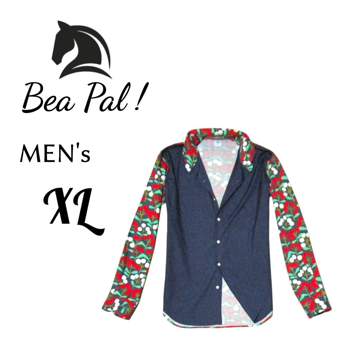 - 送料込み メンズXLサイズ Bea Pal ! 高級オーダーメイド 長袖シャツ NAVY×チェリー柄