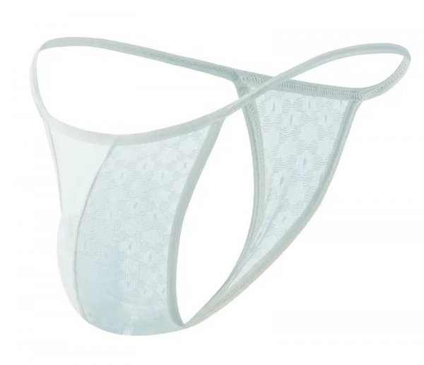 - メンズ フルシーム サイドストリング シースルー メッシュ Tバック ビキニ ウォーターグリーン水玉 日本S~Mサイズ