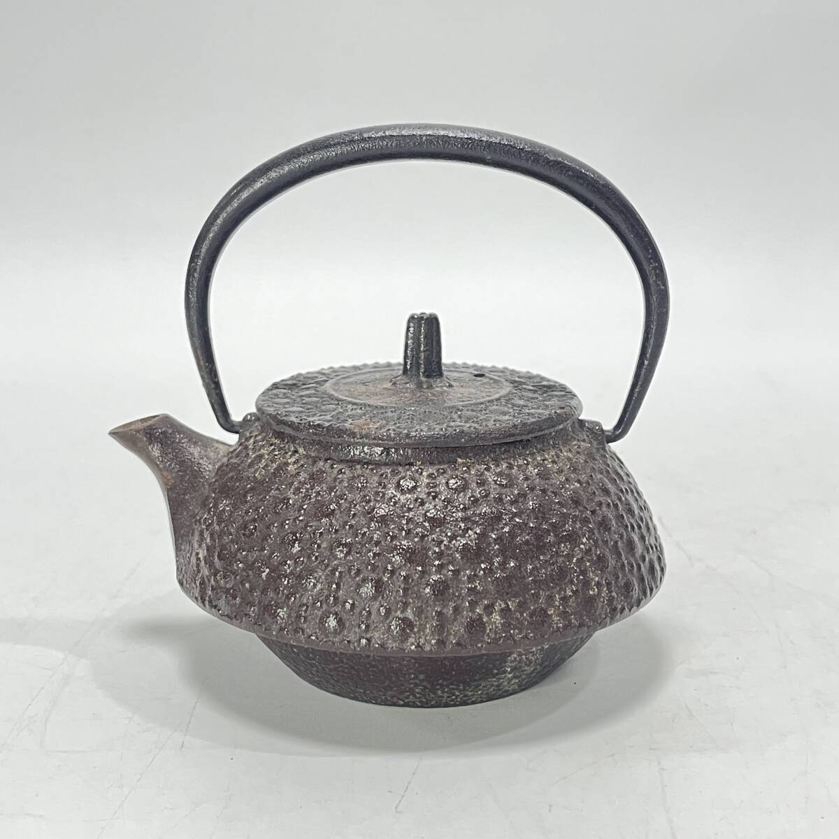 - 【63790V】南部鉄器 あられ 鉄瓶 鋳物 鋳鉄 茶こし付き 湯沸 煎茶道具 金属工芸 重量562g 経年保管品 現状品