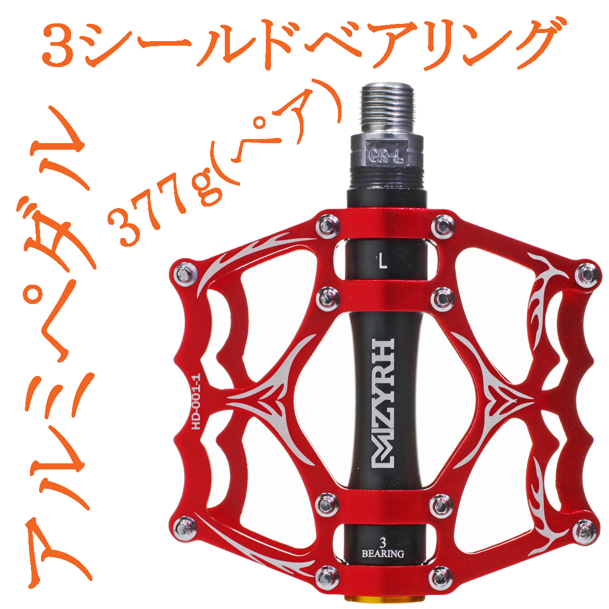- 新品 アルミペダル 左右セット ベアリング3個搭載 レッド ブラック 【バルク品】 赤黒 自転車 マウンテンバイク MTB クロスバイク
