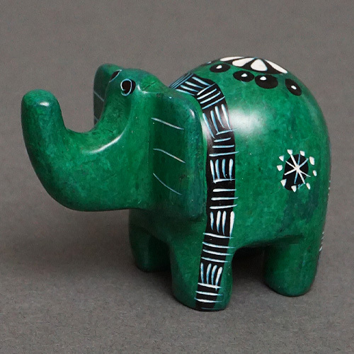 - アフリカ ケニア ソープストーン ミニ ゾウ 象 グリーン 緑 Sサイズ 動物 置物 オブジェ アフリカ雑貨